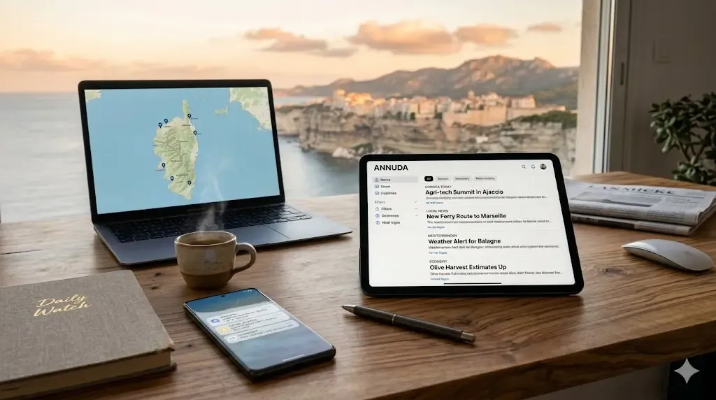 Chaque matin, nous passons parfois plus de vingt minutes à ouvrir Corse Matin, RCFM, Via Stella, Corse Net Infos… un par un, pour ne rien rater de ce qui se passe sur l’île. Annuda propose une autre approche : tout voir au même endroit, en quelques clics, sans dispersion. Voici ce que nous avons découvert en explorant cet outil, et comment l’utiliser pour simplifier vraiment votre rapport à l’actualité corse.