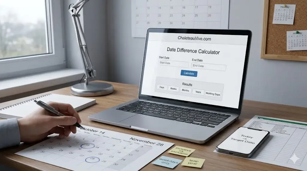 Nous avons tous vécu ce moment légèrement frustrant : essayer de calculer combien de jours séparent deux dates, stylo en main, calendrier ouvert, et finir par se perdre entre les mois de 28, 30 ou 31 jours, les années bissextiles et les passages de décembre à janvier. Le résultat est rarement fiable au premier essai. Le calculateur de différence de dates proposé par chaleteauvive.com règle ce problème en quelques secondes, gratuitement, sans inscription. Dans cet article, nous vous expliquons comment l’utiliser, comment interpréter le résultat, et quand préférer Excel ou d’autres outils selon votre besoin.