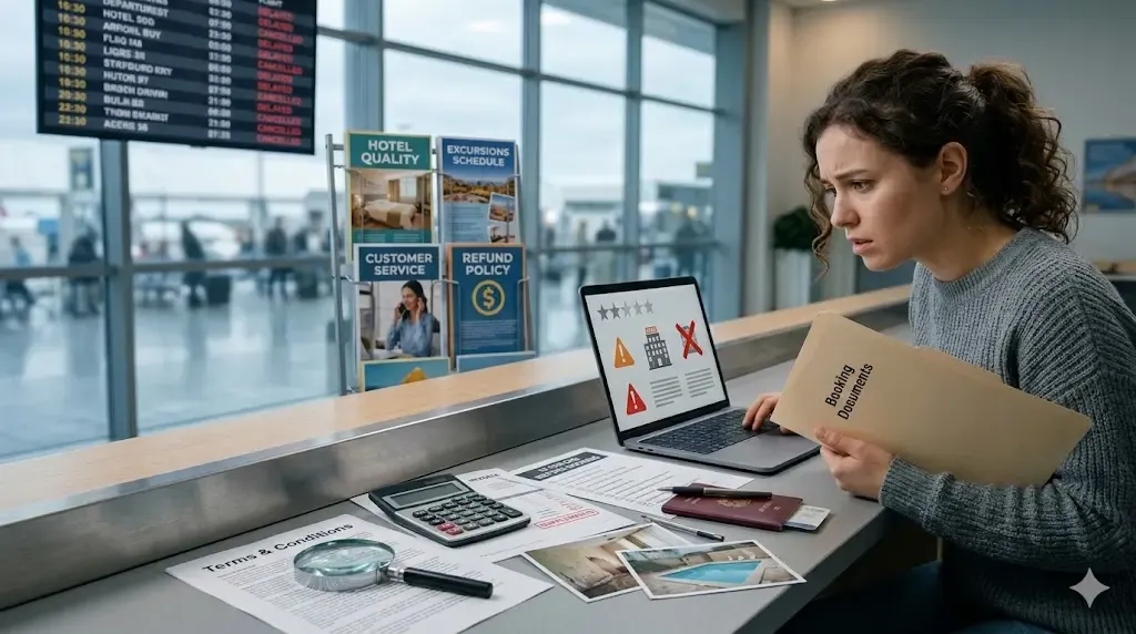 C’est le point qui génère le plus de frustration. Une offre affichée à 599 € par personne peut rapidement grimper à 850 € ou plus une fois ajoutés les bagages en soute, les transferts aéroport, les taxes locales et les options d’excursions présentées comme quasi indispensables.